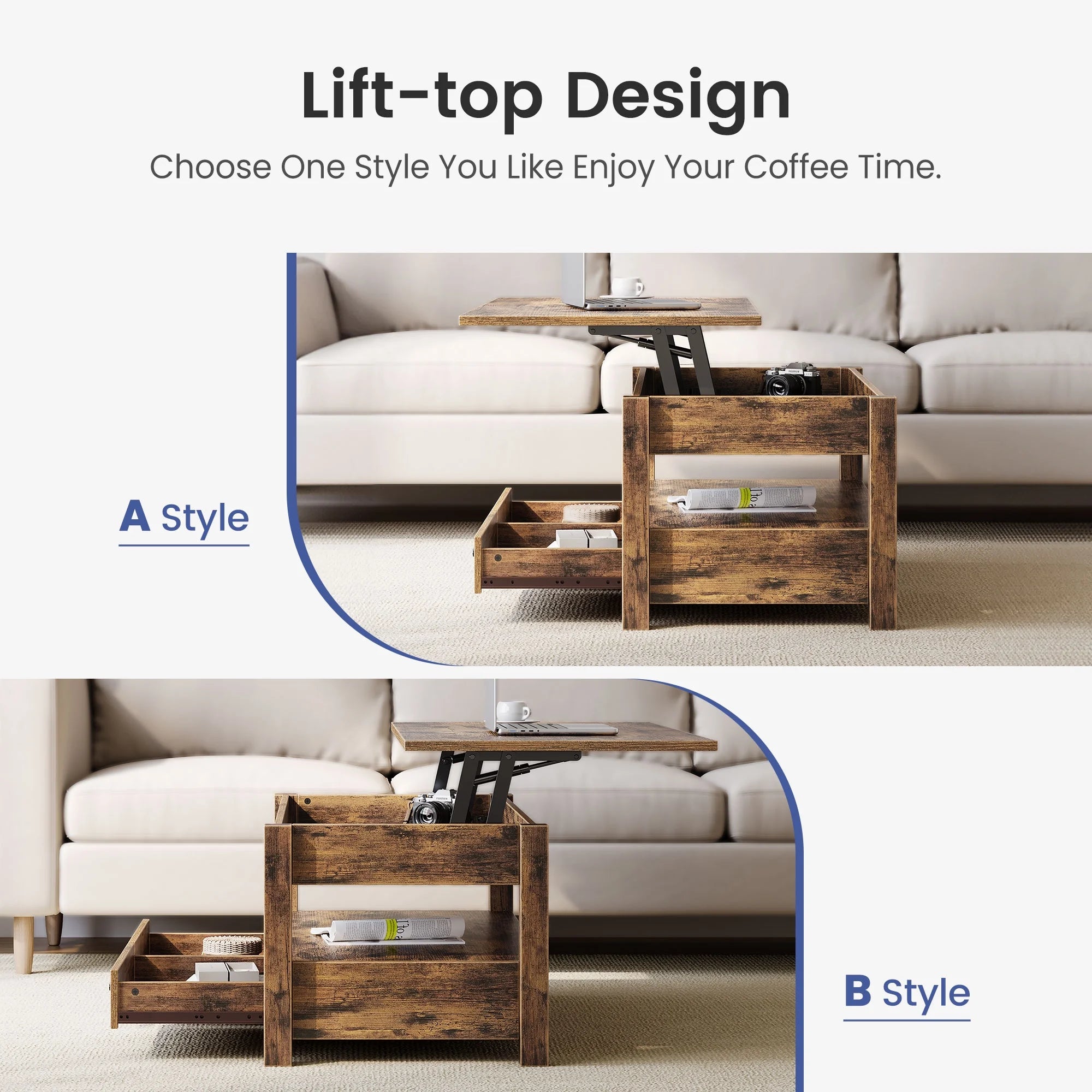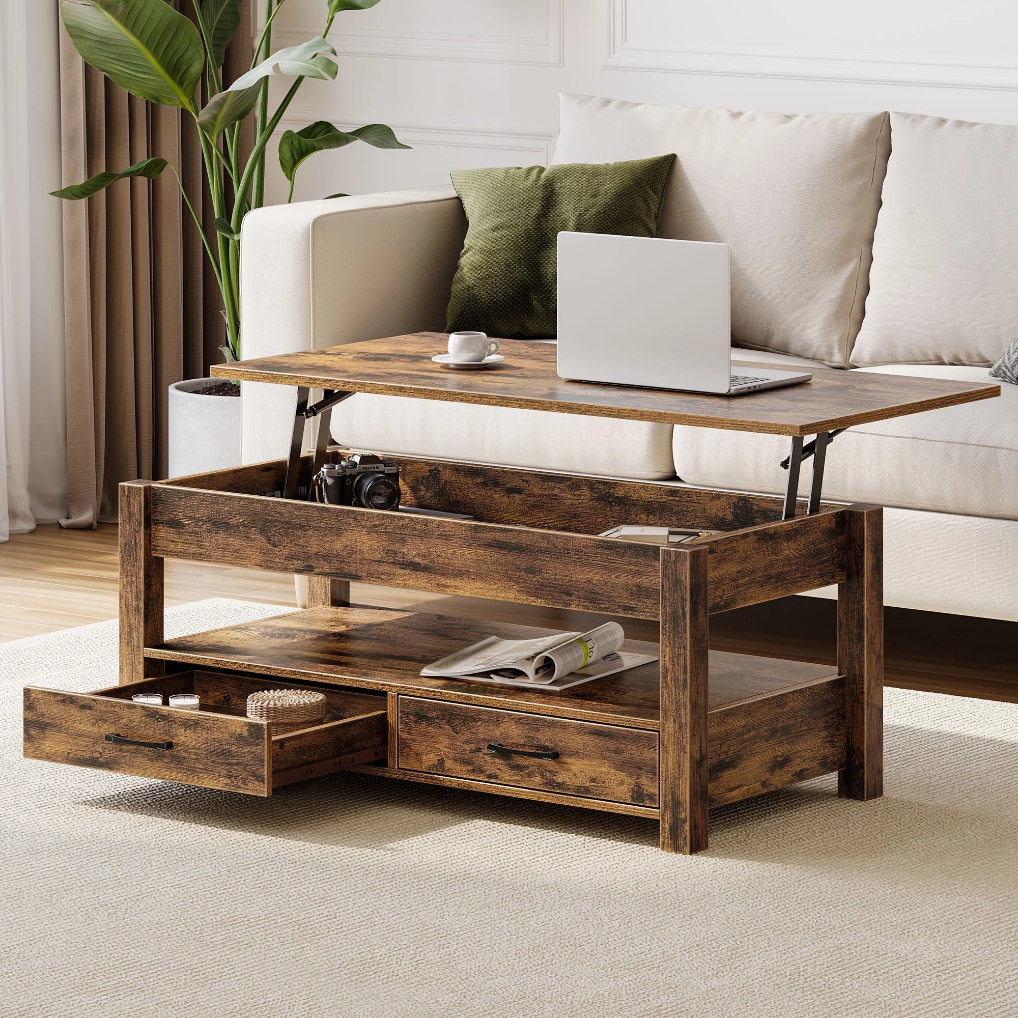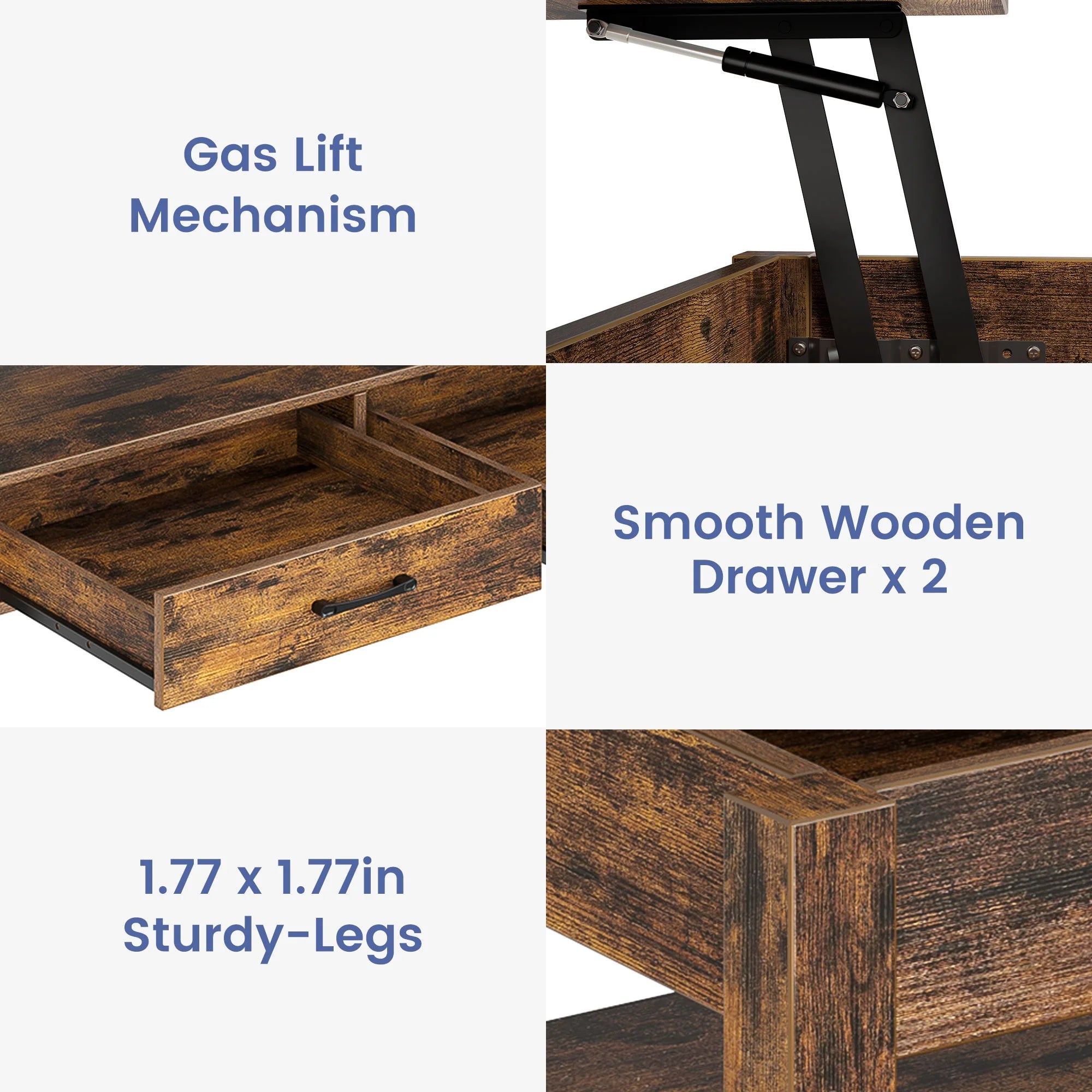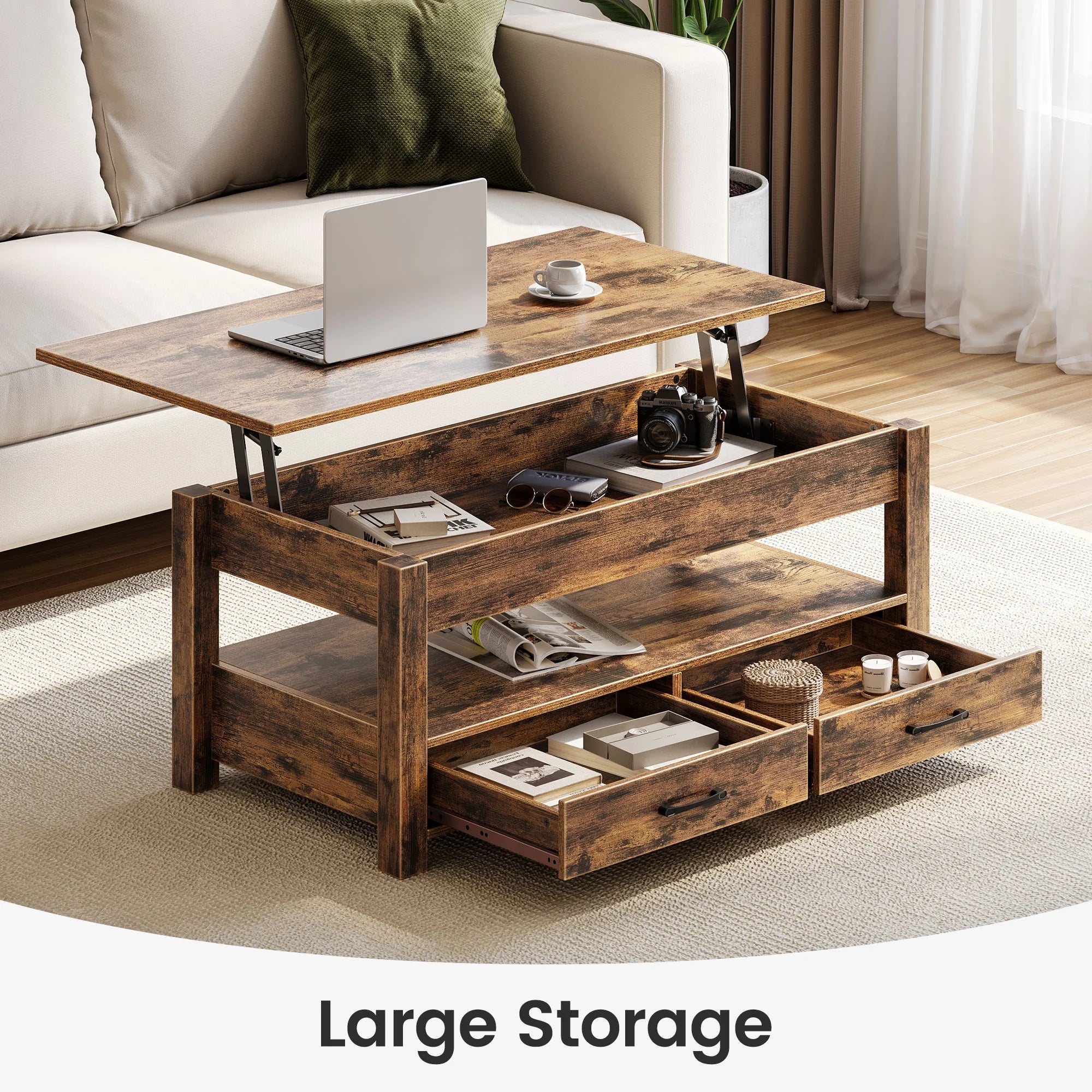 - 【Hidden Storage & High Capacity】The lift top coffee table with storage includes a concealed compartment and two drawers, supporting up to 100 lbs. A practical storage coffee table for organizing books, electronics, or board games.
