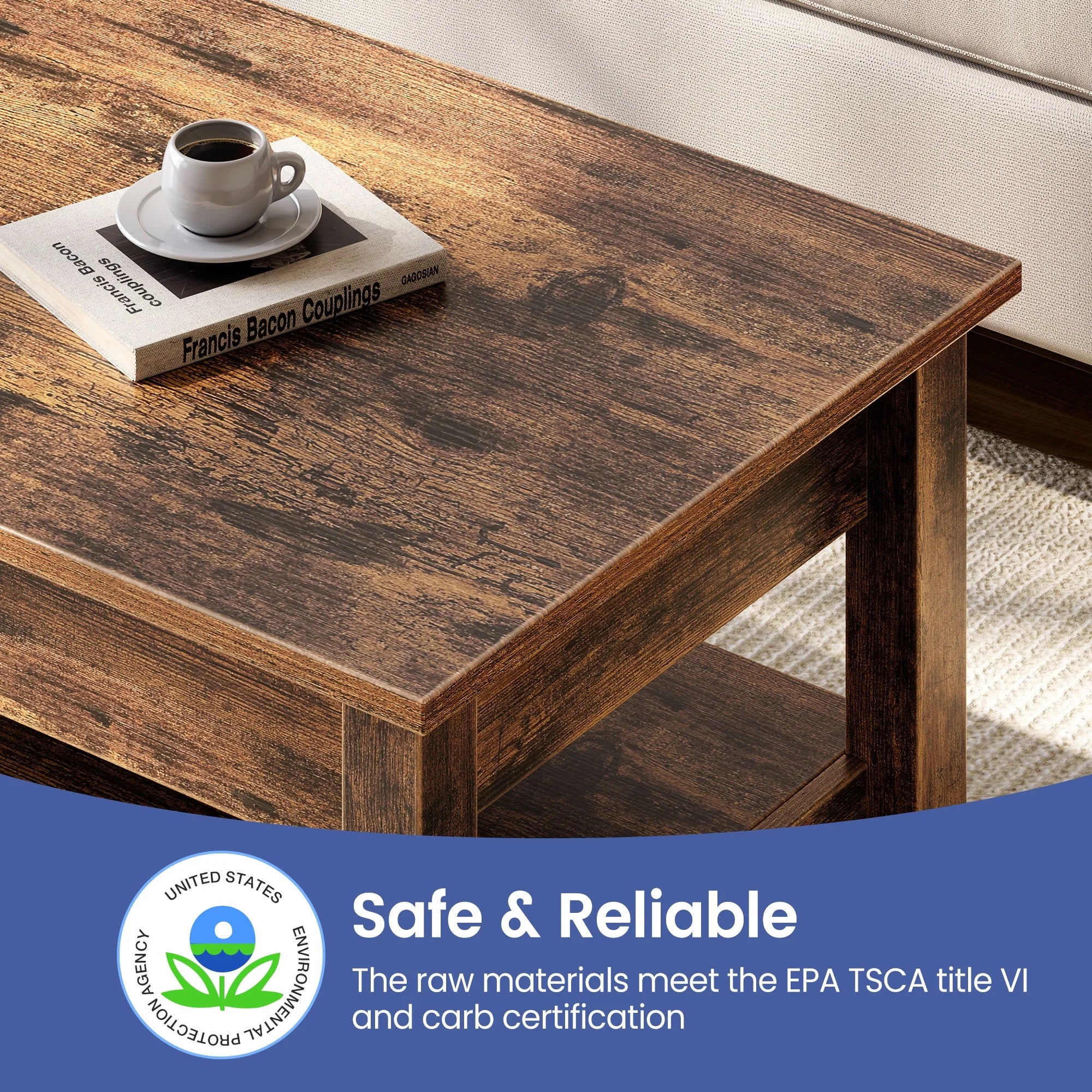 - 【High-Quality Certification, Sturdy and Durable】Built with reinforced particle board and a metal frame, this wooden coffee table alternative meets rigorous durability standards, ensuring stability for long-term use as a coffee table for living room.