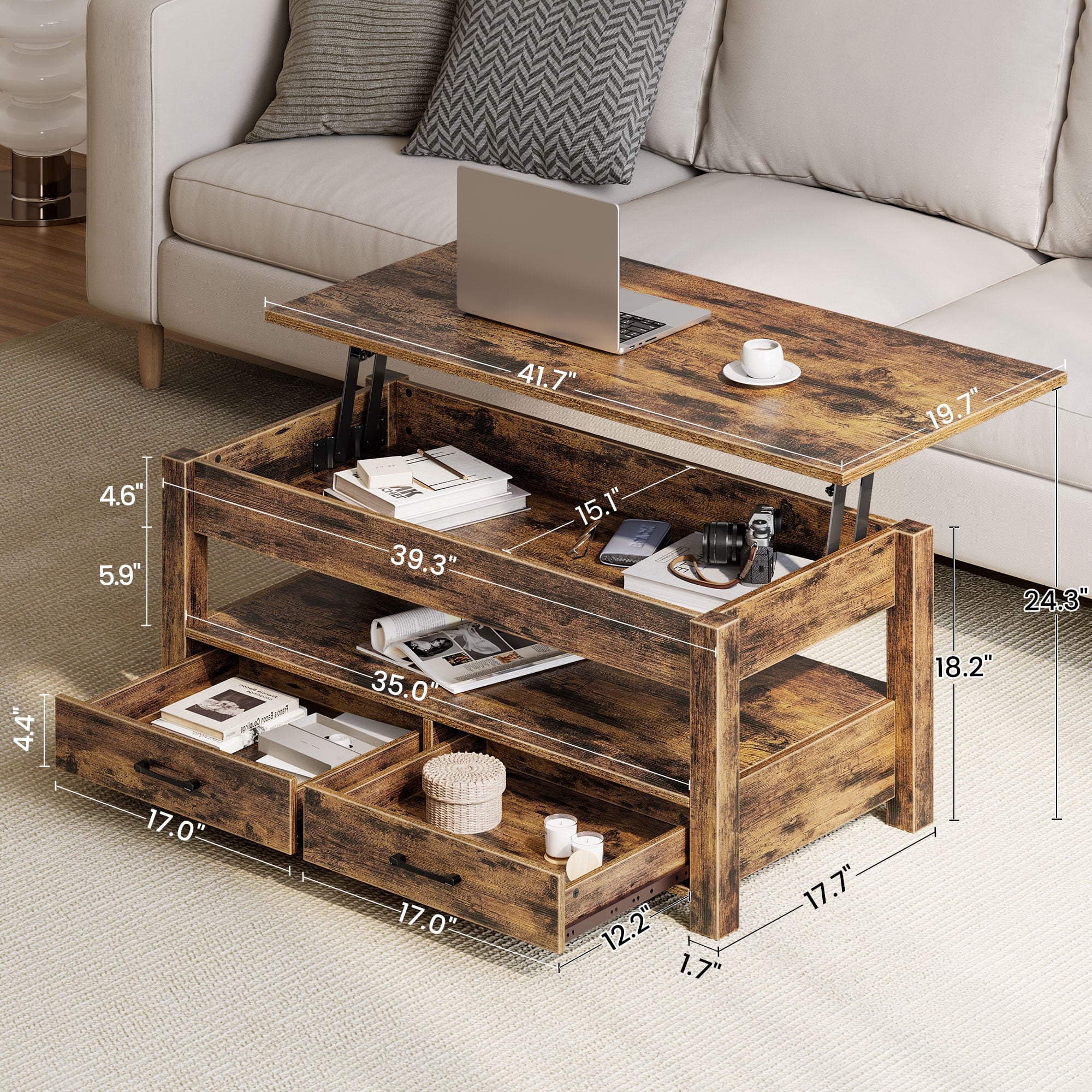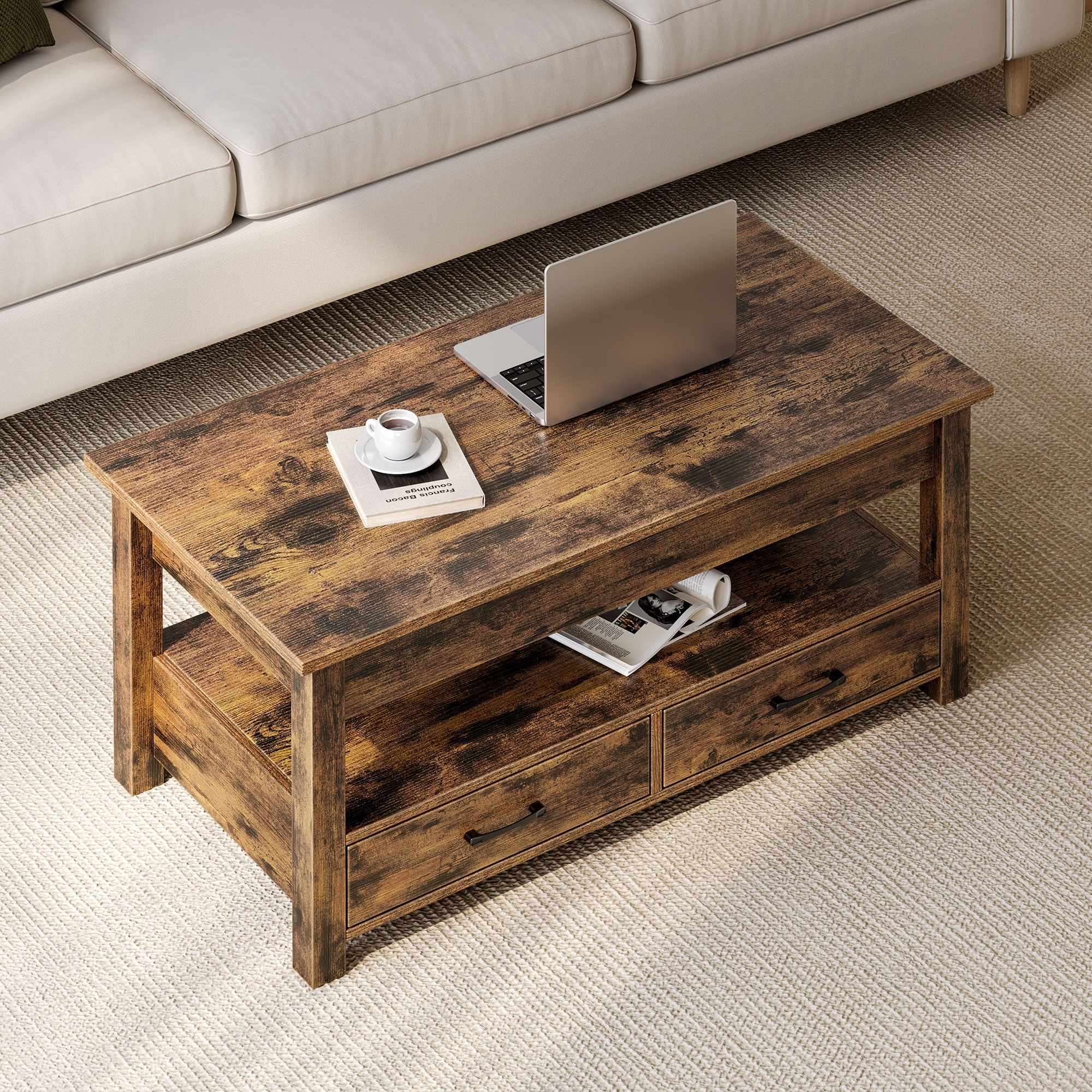 Greenstell Lift Top Coffee Table with 2 Drawers,39"Wide, Rustic Brown