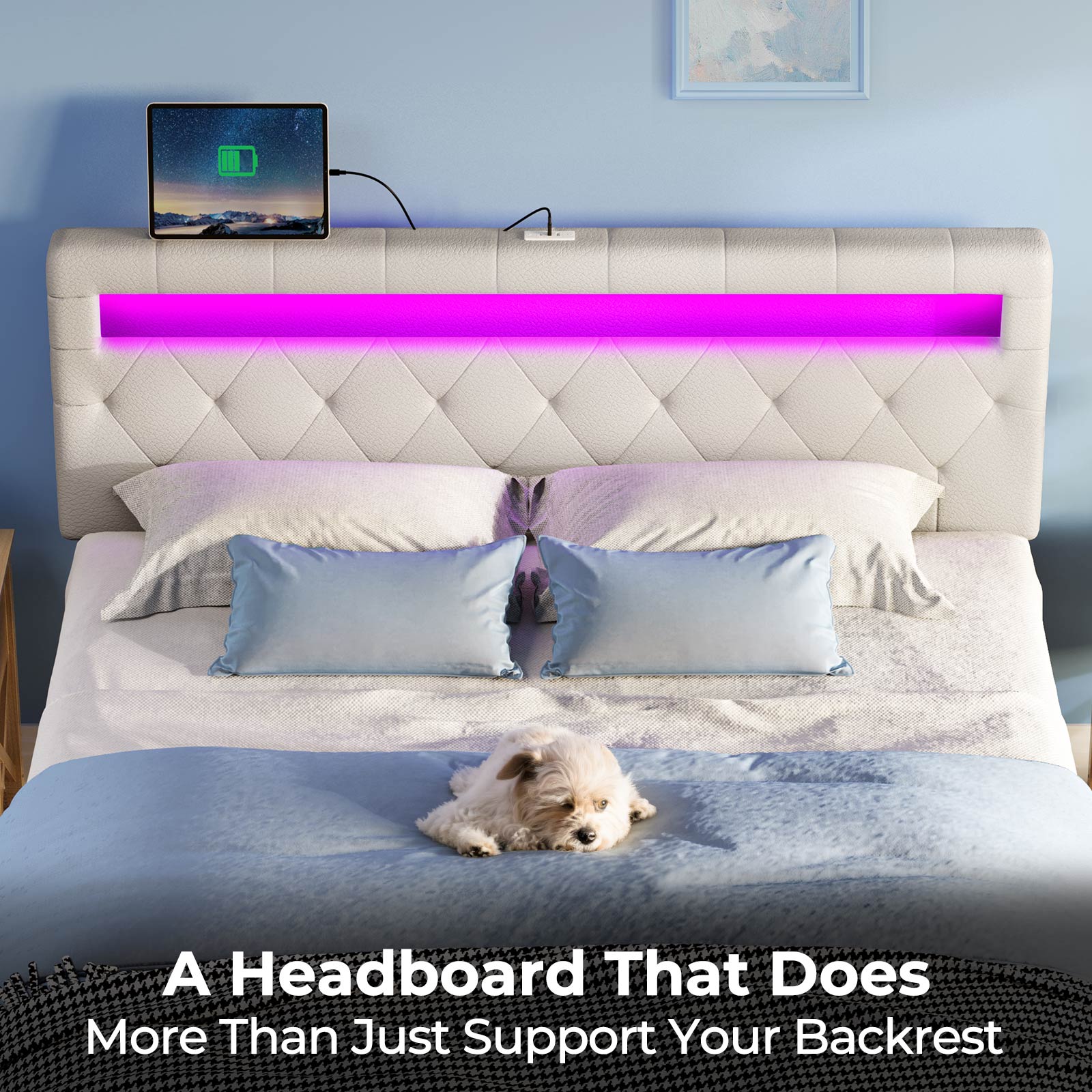 GREENSTELL Headboard for Full Size Bed with 60,000 DIY Color of LED Light, USB & Type C Post, Attach Frame, Height Adjustable, White Leather Wall Mounted Head Boards Only, Sturdy & Stable, Full