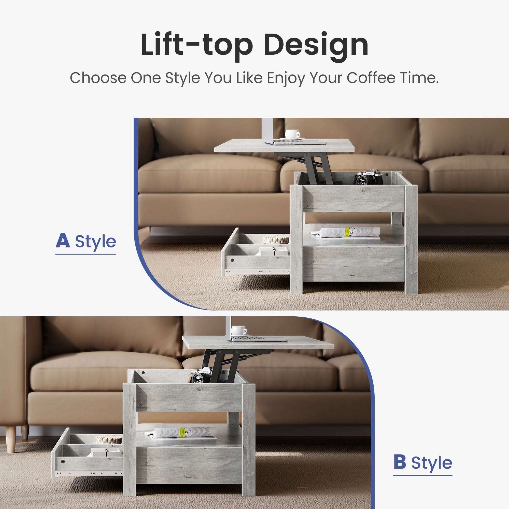 - 【Silent Lift Mechanism, Convenient and Functional】The coffee table lift top features a high-quality spring hinge system, allowing noiseless height adjustment—perfect for transitioning between a low coffee table and a functional workspace.