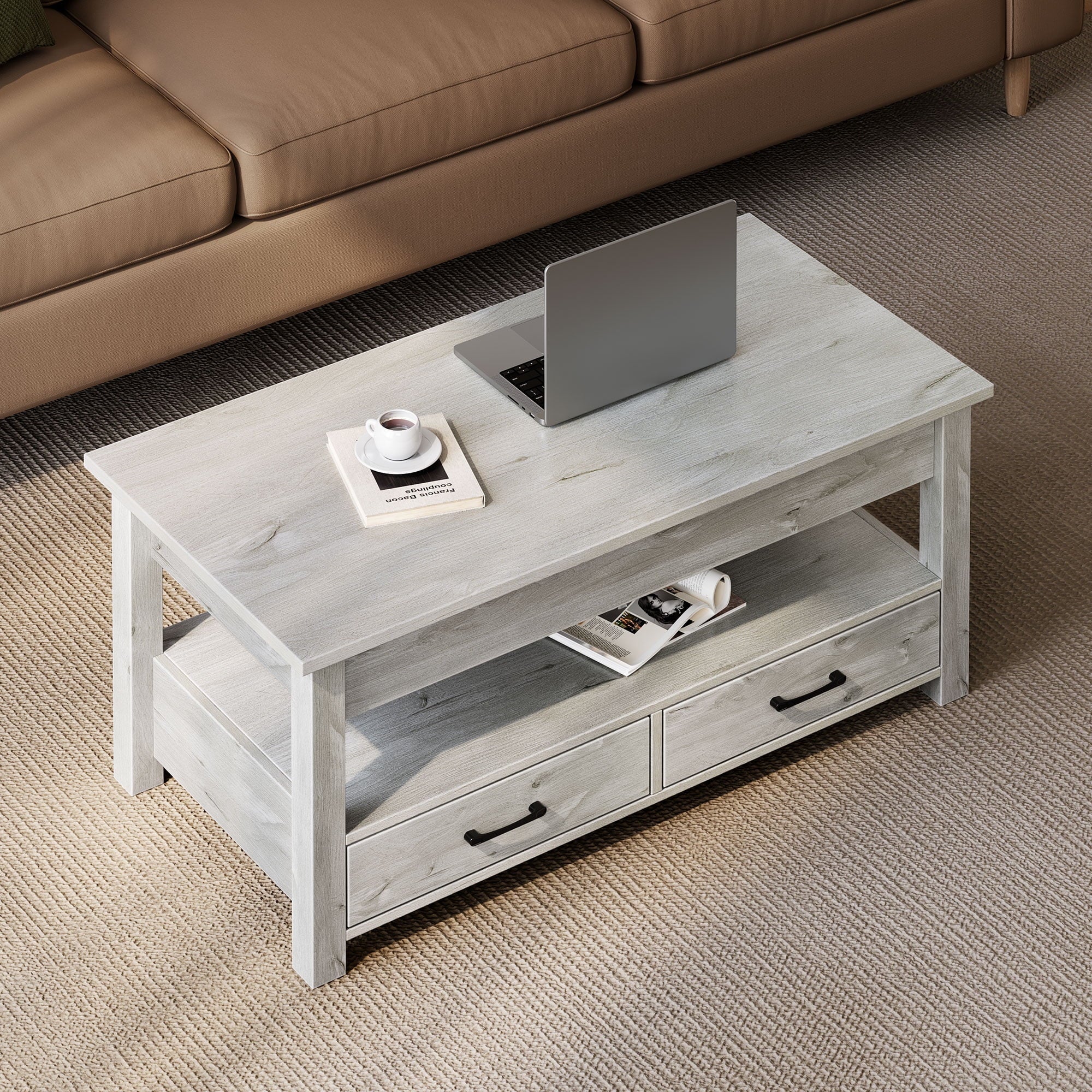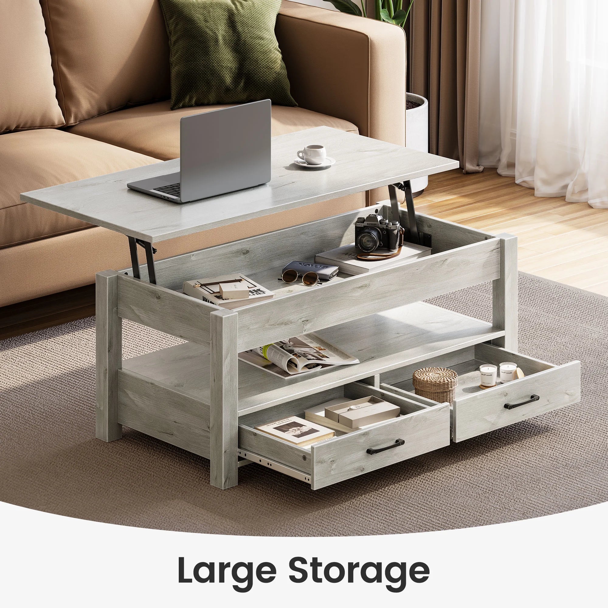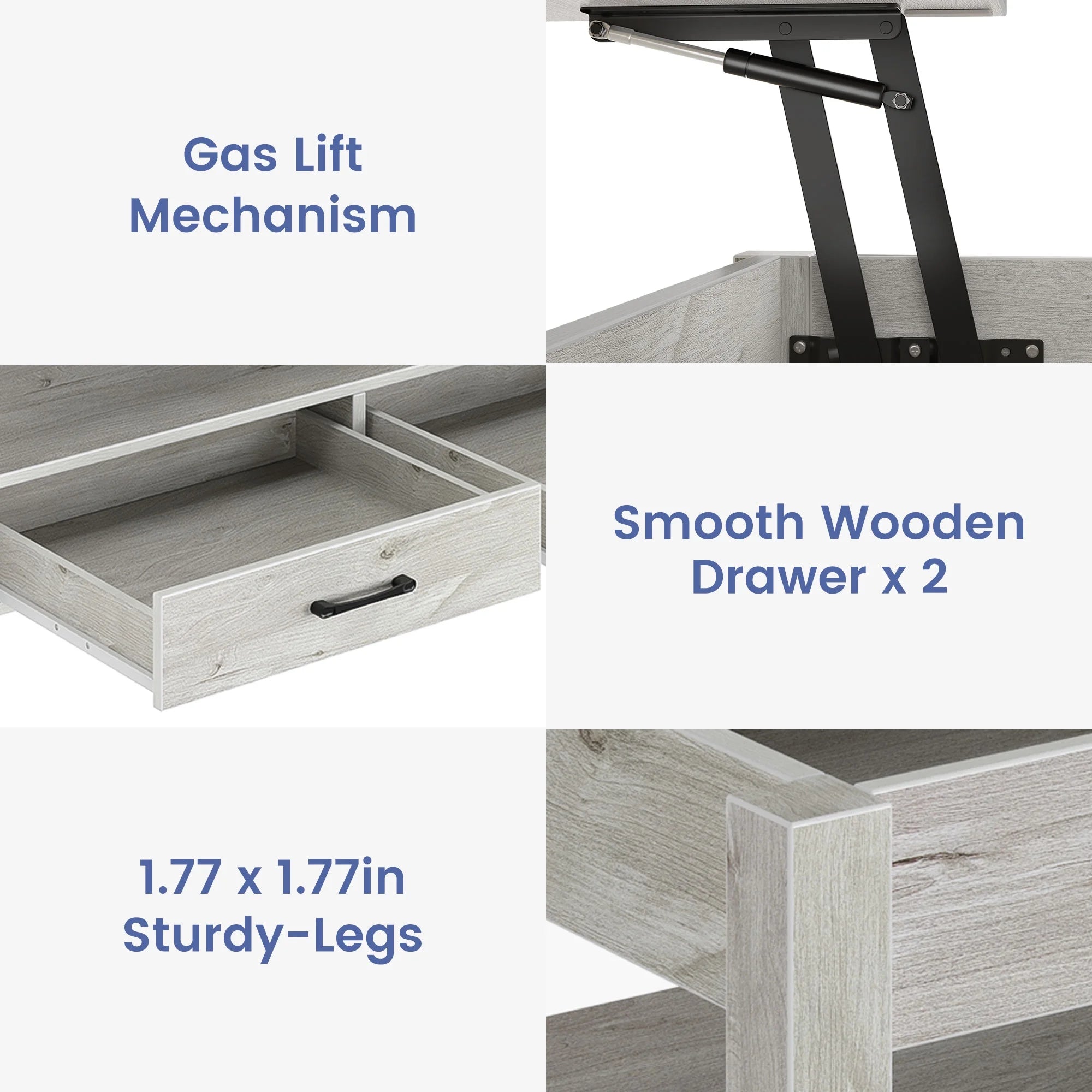 Greenstell Lift Top Coffee Table with 2 Drawers,39"Wide, Gray