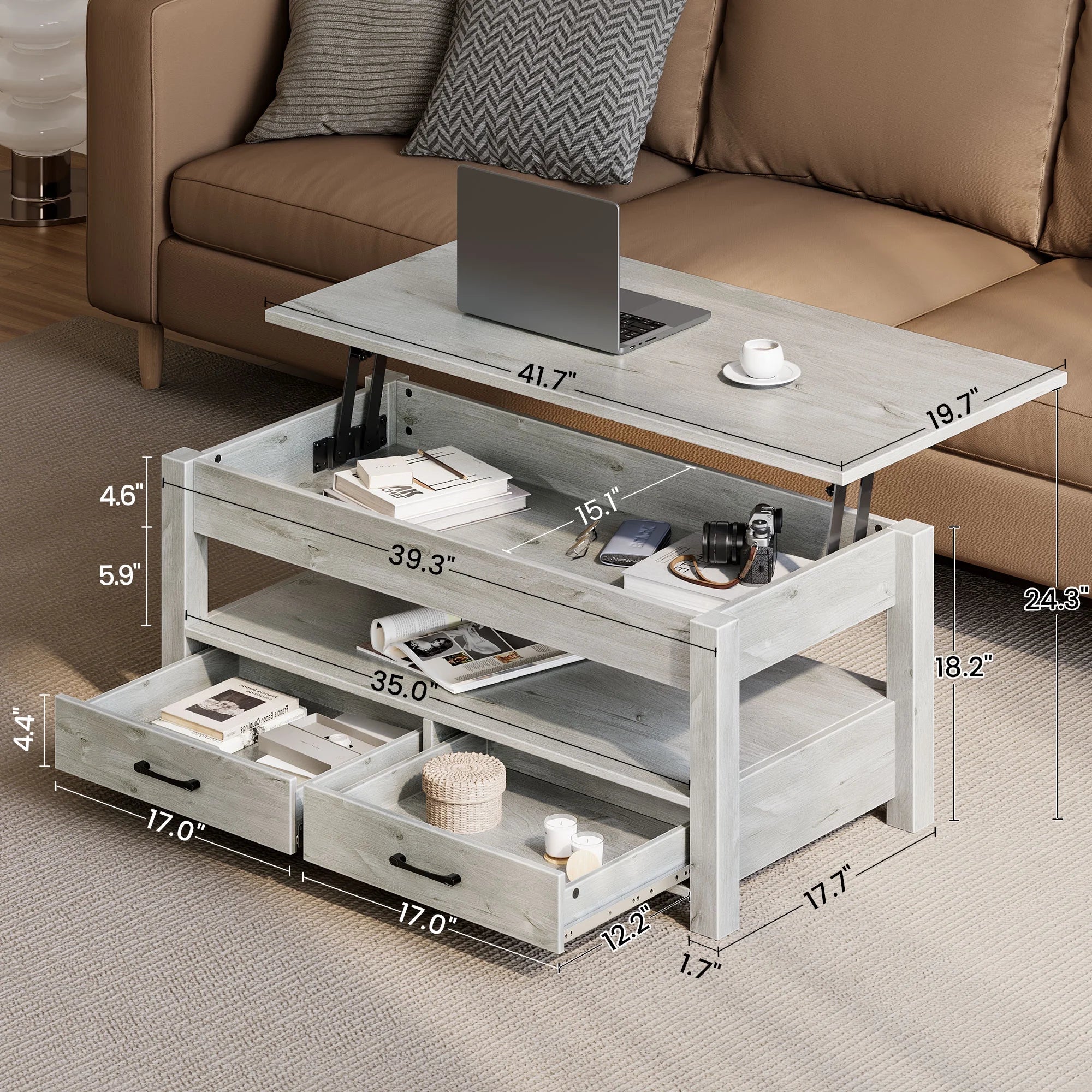 - 【Hidden Storage & High Capacity】The lift top coffee table with storage includes a concealed compartment and two drawers, supporting up to 100 lbs. A practical storage coffee table for organizing books, electronics, or board games.